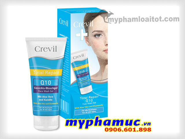 Gel rửa mặt trắng da, ngừa mụn CREVIL TOTAL REPAIR Q10 FACE WASH GEL