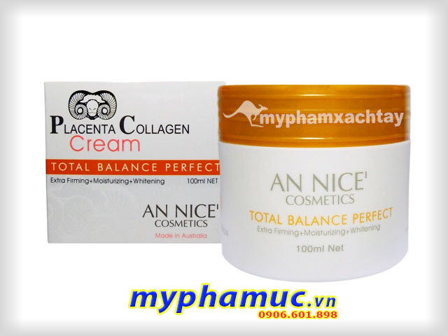 Kem An Nice's Placenta Collagen dưỡng ẩm, săn chắc và làm trắng da,Chứa collagen và nhau thai cừu tập trung kích thích tái tạo tế bào,Tăng sản xuất tự nhiên của collagen và Elastin.