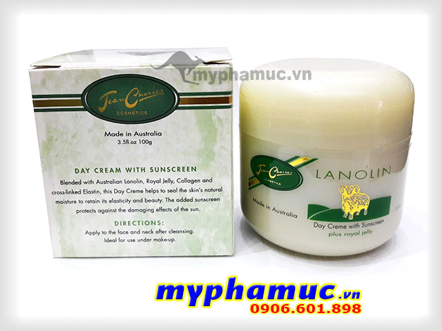 Kem nhau thai cừu LANOLIN DAY CREAM là sự Pha trộn Lanolin,Royal Jelly, Collagen và Elastine, Day Crème giúp giữ độ ẩm tự nhiên của da để duy trì độ đàn hồi và vẻ đẹp của nó. Lý tưởng để sử dụng trong make-up. Có chất chống nắng thêm bảo vệ chống lại các tác hại của ánh mặt trời.