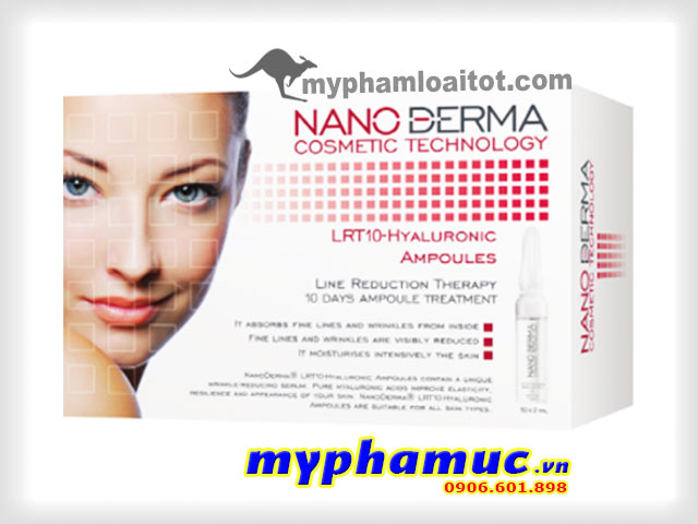 NanoDerma® LRT10 Hyaluronic Ampoules: LRT (Line Reduction Therapy – Liệu pháp giảm vết nhăn) có chứa một loại Serum giảm nhăn độc đáo. Axit hyaluronic tinh khiết cải thiện độ đàn hồi của da, phục hồi và giúp da căng, mịn, sáng đẹp.
