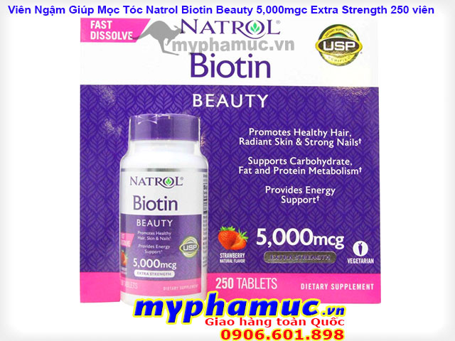 Viên ngậm Natrol Biotin Beauty 5000mcg kết hợp công thức độc đáo để bổ sung khoáng chất và các loại vitamin thiết yếu từ thiên nhiên nên sẽ là lựa chọn hoàn hảo để nuôi dưỡng và bổ sung mái tóc phát triển cũng như làn da khỏe đẹp từ sâu bên trong.